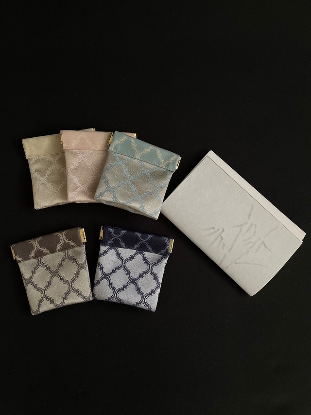外出先で使い終わった懐紙やティッシュ・・・どうされていますか? まさか数寄屋袋やバッグの中にそのまま入れてますか? もしそんな方がいらしたら是非こちらの商品をオススメします! 『袖おとし』と言うのですが、簡単に説明すると携帯用のチリ入れになります。 茶道をされる方はご存知かと思いますが、 濃茶を拭った懐紙や、茶懐石を頂いた時にびっくりするほどたくさん使う懐紙を直接お着物のたもとや、数寄屋袋に入れたら汚れるので、この『袖おとし』に入れておくのです。 濡れている紙類を入れられるように開口部と内側にビニールコーティングしてありますので、滲み出る事もなく、お着物やバッグの中も汚れません! あと、 野点や茶箱用に濡れた茶巾、小茶巾入れにもピッタリ!! その他にアクセサリー入れでもOK!使い方はお客さま次第な袋です。 手のひらに収まる大きさで、片手で開閉できるワンアクションがとても使いやすいのです。 底に隠れマチがついてますのでかなりの量が入りますよ! ビニール袋と違って音が出ないし、とにかくデザインが素敵なので、所作がエレガントです。 まとめると・・・・ ⚫︎片手のひらに収まる ⚫︎開閉アクションが1回 ⚫︎音が出ない ⚫︎中身が見えない ⚫︎何度も使えて ⚫︎掃除が簡単で衛生的 ⚫︎かさばらない ⚫︎デザインが素敵 お茶室でガサガサって音が出ないって結構重要。 お色も4色展開 (ライトベージュは完売致しました) SOUKI DOで人気のモロカン柄 カラー ブラック、ライトブルー ピンク、ネイビー サイズ W8×H8.5×D2 (㌢) 一回り大きいサイズもございます。 茶道を嗜む方も、そうでない方も、数寄屋袋やバッグの中に一つあるととっても便利な商品です! お名前オプションサービスは終了いたしました。