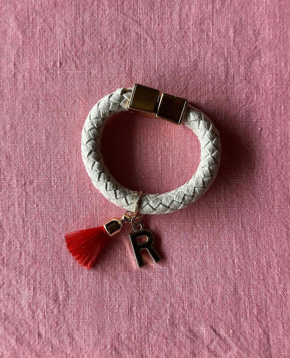 シンプルなデザインなので、どんな草履にも合わせやすく、鼻緒本体にイニシャルやラッキーナンバー、そしてミニタッセルを選んでいただき、オンリーワンな鼻緒留を作っていただけます!